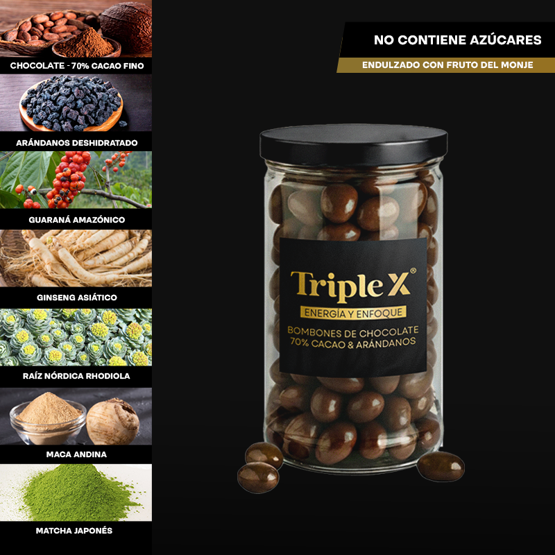 Dale a tu cuerpo el fuego que necesita. Solo 2 dosis diarias de Bombones TRIPLE X® para vivir con más placer.