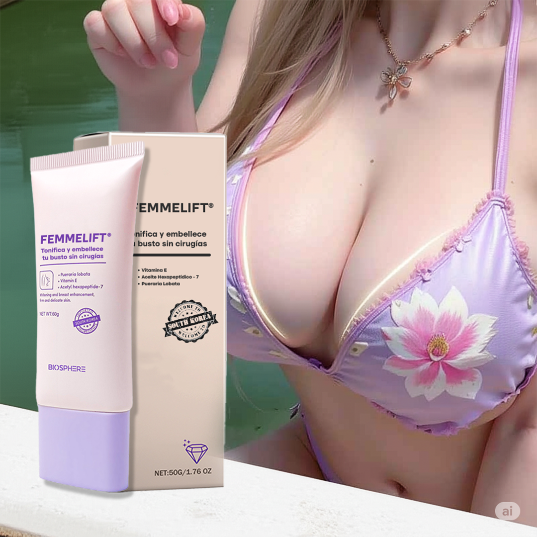 FEMMELIFT® crema reafirmante y tonificante, que realza el volumen natural de tus pechos con una apariencia firme y atractiva.