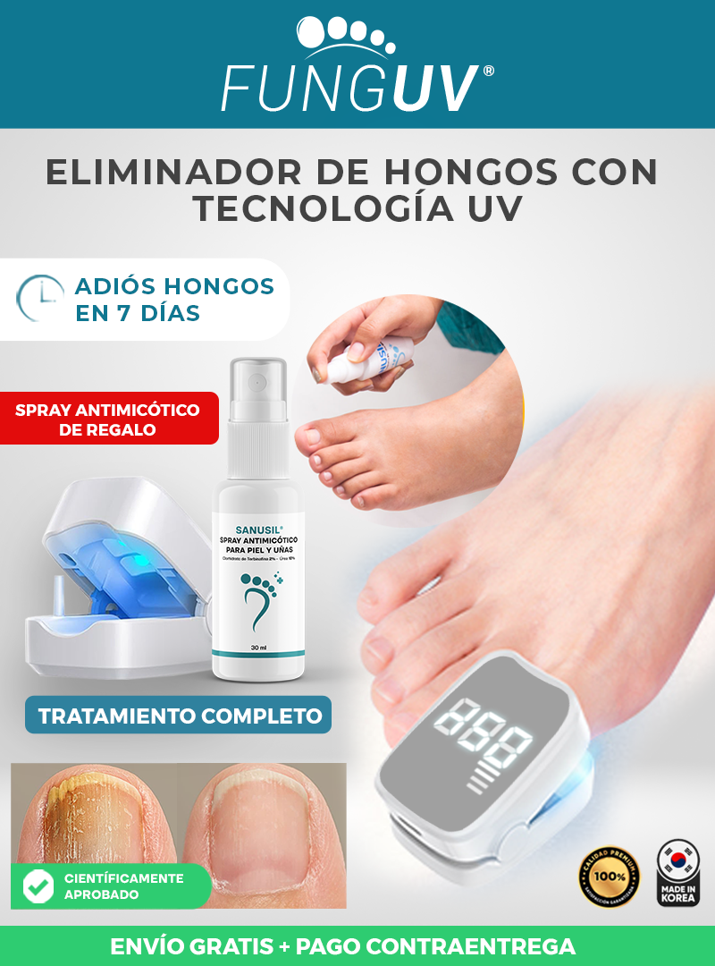 FUNGUV® elimina hongos en uñas, pies, manos y cuero cabelludo de forma segura y sin dolor.