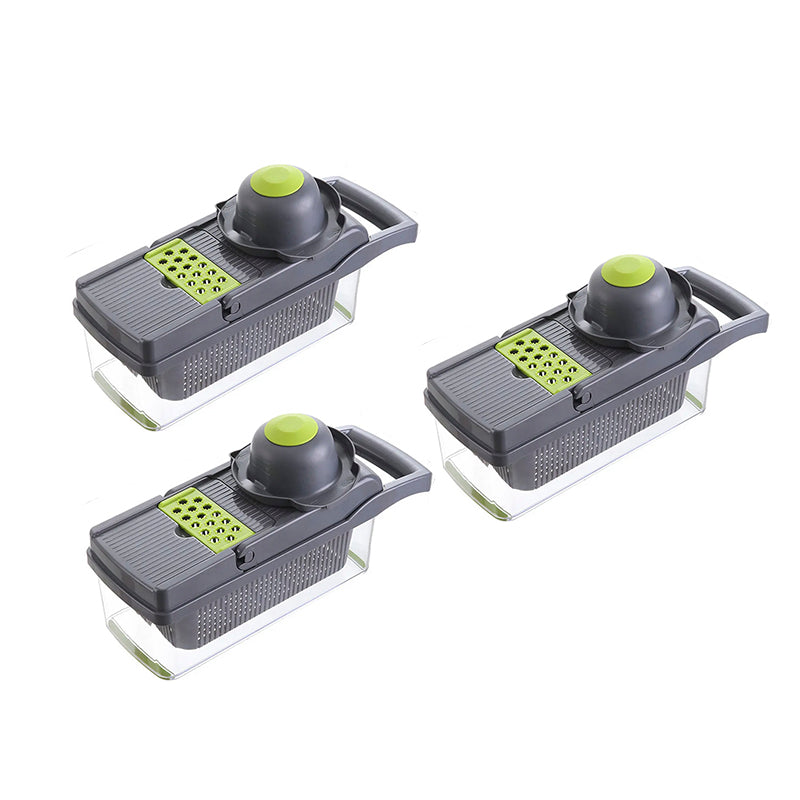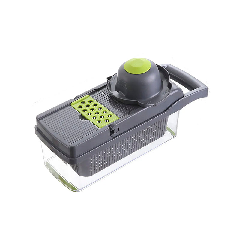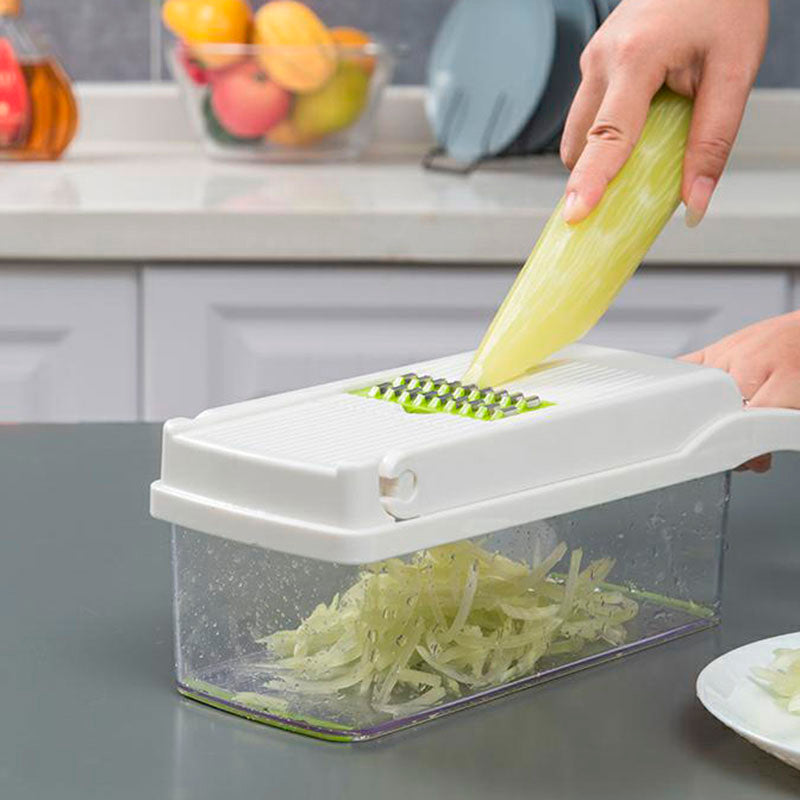 El cortador de verduras contiene 7 cuchillas reemplazables libremente para dados grandes o pequeños, rebanadas gruesas o finas.