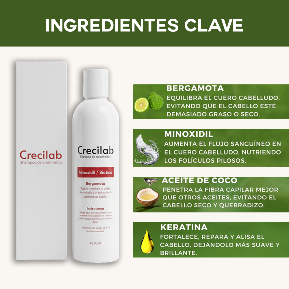 Contiene Minoxidil, Biotina y Bergamota en una sola fórmula.