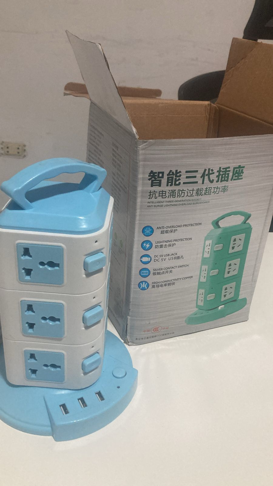 Conecta varios dispositivos a la vez con está practica torre que cuenta con entradas universales de forma segura, gracias a su protección de sobrecarga.