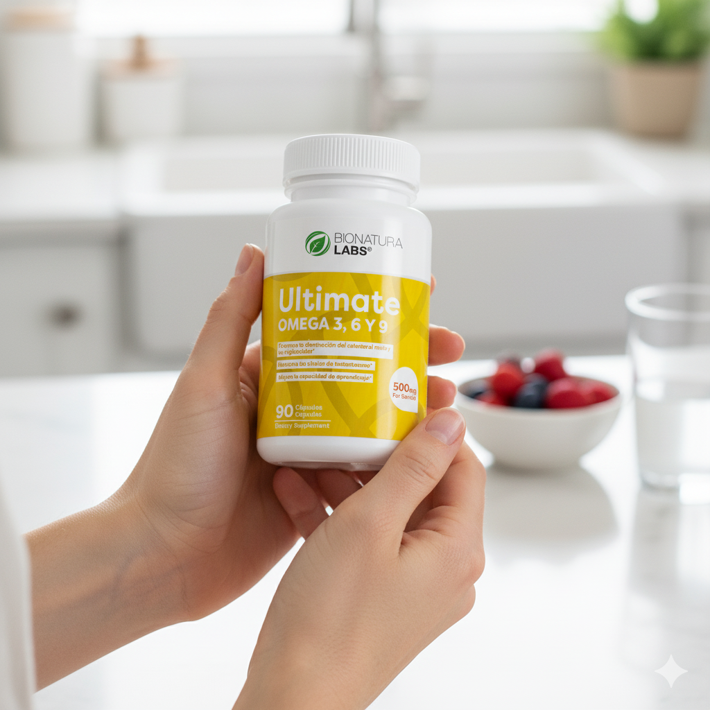 Ultimate Omega te ayuda a reducir el cansancio y mantenerte activo en tu rutina diaria.