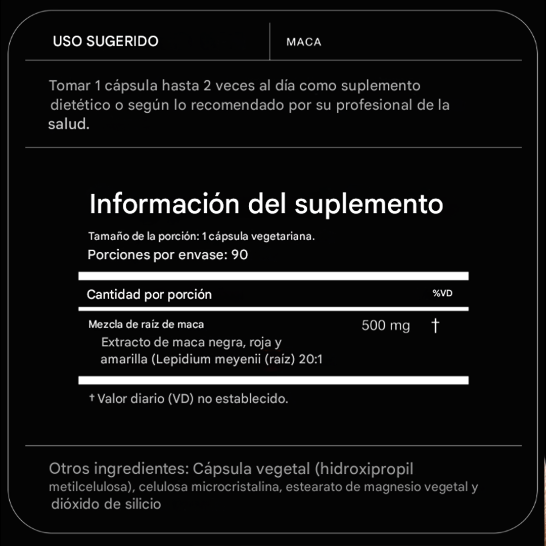 Un extracto premium 20:1 que multiplica los beneficios de la maca tradicional.